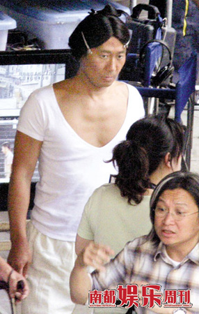 在《十月圍城》中,黎明放下天王巨星的架子,扮演一名乞丐,也是“六義士”之一。乞丐已經(jīng)是一個夠倒霉的角色了,沒想到片場休息,黎明把假發(fā)一梳弄,竟成了驚世駭俗的天王級“如花”,不過據(jù)說扮丑很容易拿影帝,黎明顯然是下定決心不怕犧牲了,剛剛出演過梅蘭芳的粉面就直接被化妝師糟蹋成黑臉,還特別給這位沒錢理發(fā)的乞丐先生留了一頭換七八糟的長發(fā)。長發(fā)未免有點熱,黎天王倒也挺能應(yīng)付,脫了戲服穿件“老頭衫”,還用兩個發(fā)卡把頭發(fā)梳弄上去,有利散熱。攝影師的長鏡頭在片場找了很久,才終于在導(dǎo)演棚里找到了“黎如花”。
