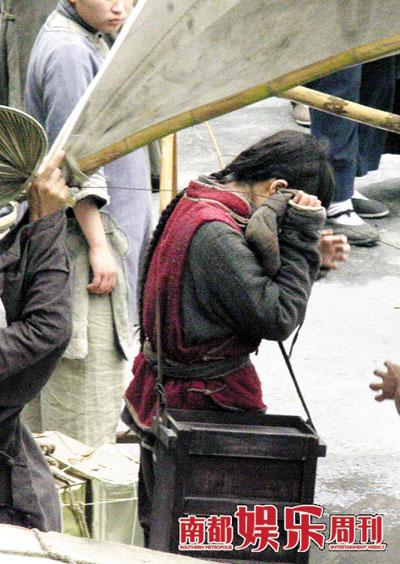 這是李宇春第一次拍電影,還碰到這么多的明星大腕、前輩高人,說沒壓力也不可能。片場休息,李宇春很少笑,總是坐在黃包車?yán)镆粋人孤零零地想問題。導(dǎo)演一喊開機(jī),不管有戲沒戲,她都會站到路邊仔細(xì)看。沒想到路邊也不安全,一陣邪風(fēng)吹倒一個雨棚,棚倒桿折,一下子就砸到李宇春的頭上。好容易從雨棚下掙扎出來,腦袋上不免起了個“包”,嚇壞了周圍的助理們,圍上去揉了半天,所幸并無大事。李宇春揉了揉腦袋,倒露出了一絲輕松的笑。記者 秦耀輝