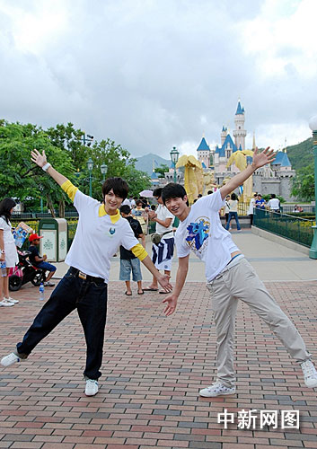吳建飛與向鼎此前現(xiàn)身香港迪斯尼樂園,完成了宣傳片的拍攝。雖然已不是第一次來到香港迪斯尼樂園,但兩位好男兒依然對樂園內(nèi)的一景一物表現(xiàn)出強(qiáng)烈的興趣,十分享受童話世界般的夢幻氛圍。拍攝中,他們在樂園的景觀前擺出可愛姿勢,興奮地體驗(yàn)“旋轉(zhuǎn)飛車”,還興致勃勃地在紀(jì)念品專賣店里挑選有史迪仔圖案的T恤,流露出濃厚的童心。