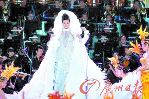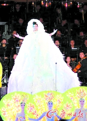 一向給人端莊印象的宋祖英,此次在演出中也換上了六套華服,每一套都可以用“驚艷”來形容。這幾套禮服將中國元素運用得淋漓盡致,造型師還罕見地在頭飾上做了不少變化,為她增添了不少活潑之氣。據(jù)悉,這些服裝是中國、意大利、法國、日本等國際頂級設(shè)計師聯(lián)合制作的。