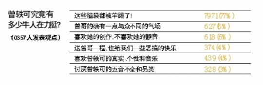同樣在開心網(wǎng)上,針對“曾軼可身后究竟有多少牛人在力挺?”的帖子,有10357人(截至昨日)投票表態(tài),結(jié)果有7971人選擇了“這些腦袋都被羊踢了”記者 齊帥 實習(xí)生 戴曼曼
