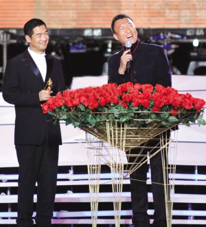 昨晚8時,第27屆中國電視劇飛天獎頒獎典禮在北京“水立方”盛大舉行。本屆“飛天獎”的明星陣容實在強大,創(chuàng)下了歷史之最,李幼斌、孫紅雷、張國立、孫儷、殷桃等眾多電視劇紅人一一登場;《闖關(guān)東》、《潛伏》、《金婚》、《士兵突擊》等20多個劇組分別亮相,十分熱鬧。最受關(guān)注的優(yōu)秀男女演員獎昨晚現(xiàn)場揭曉,“佟掌柜”閆妮和薩日娜同獲“飛天”優(yōu)秀女演員獎。優(yōu)秀男演員獎杯則被張國立和孫紅雷抱了個滿懷。昨晚最高興的非孫紅雷莫屬,握著獎杯的他快把嘴笑歪了。