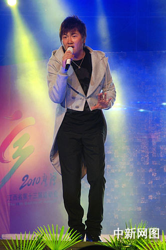 中新網(wǎng)鷹潭10月24日電 (劉占昆) 10月23日晚,中國內(nèi)地著名實力歌手孫楠在上周唱完山東全運會主題曲后,此次又來到江西省第十三屆運動會主辦地鷹潭壓軸連唱四首歌曲。