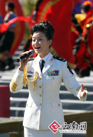 現(xiàn)場的最高潮出現(xiàn)在宋祖英出現(xiàn)時,當一身戎裝的她還在舞臺后場待唱時,全場就響起了一片掌聲。在唱完一首《送你一朵東方茉莉》之后,她又演唱了一首《愛我中華》,將現(xiàn)場的氣氛帶至最高潮。
