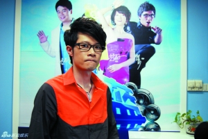 湖南衛(wèi)視的爆料人“舞美師”前日在浙江衛(wèi)視《我是大評(píng)委》之“麥霸英雄匯”直播露面,首次現(xiàn)出真容(下圖)。讓人大跌眼鏡的是,一直以“舞美妹妹”自居、并且用廣東臺(tái)主持人趙榮的照片作為頭像的舞美師,居然是一名卷發(fā)、戴眼鏡的年輕男子。
