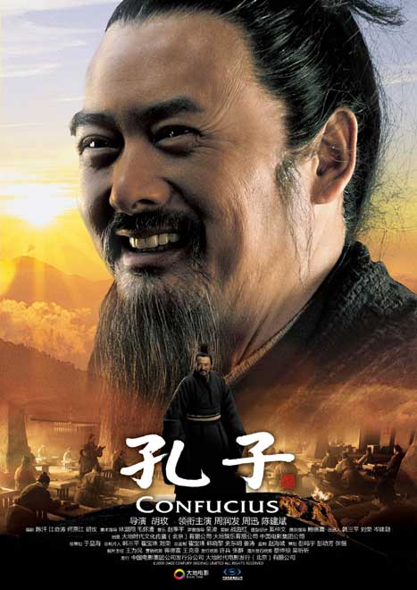本組海報展示了孔子的歡笑、抗?fàn)帯⑹、掙扎、悲哀、流浪、愛情和動作等八個側(cè)面。海報的主色調(diào)既突出了春秋時代的歷史感,更有圣人光芒澤披世人的寓意。海報通過周潤發(fā)的神情特寫和影片場景的完美結(jié)合,傳神地演繹了圣人的喜怒哀樂、文治武功和豐富情感,同時也可從這些場景中看出影片斥巨資打造的視覺效果非常的震撼宏大。