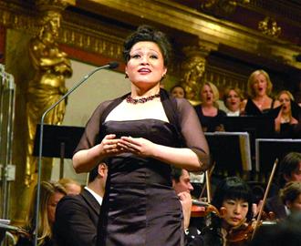 15日在維也納金色大廳舉行的首屆全球華人新春音樂會上,美籍華人女高音歌唱家黃英在演唱。當晚,100多名藝術家在這里用音樂這一世界性語言詮釋了復興中的中華民族和諧、發(fā)展與振興的時代強音。