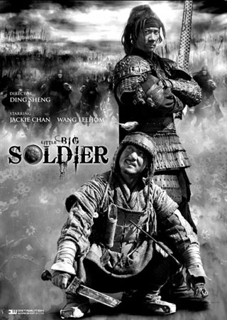 由成龍影業(yè)和保利博納聯(lián)合投資拍攝的《大兵小將》昨天現(xiàn)身戛納,首款國際版英文海報(bào)在電影節(jié)上高調(diào)曝光!按蟊背升埡汀靶ⅰ蓖趿,一個(gè)表情可愛鬼馬,一個(gè)怒視前方,兩者相映成趣。海報(bào)的背景上,依稀可見氣勢磅礴的戰(zhàn)爭場面。據(jù)成龍介紹,《大兵小將》的故事發(fā)生在戰(zhàn)國七雄的時(shí)代,是一部以戰(zhàn)爭為背景的動作喜劇片。