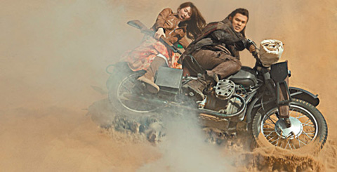據(jù)臺灣《聯(lián)合報》報道,“刺陵”中,周杰倫飾演的探險家和志玲演的小說家,拿到藏寶圖,被各路歹徒追殺,周董和志玲跨上重機車,和“鐵面人”馬隊就在漫天黃沙“尬”了起來。