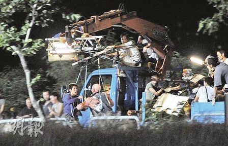 “明報(bào)”消息,前晚拍攝郭富城跟變種筋肉人吊威亞凌空對打,由于“變種人”由武指兼任,故郭富城不時(shí)跟他研究對打動(dòng)作。郭富城一下跳起向后空翻,再向變種人連環(huán)踢了10多腳,這場戲只NG了幾次便告完成。導(dǎo)演陳木勝為了增加難度,拍攝時(shí)貨車左穿右插在馬路上行駛。