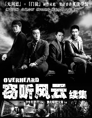 信息時(shí)報(bào)訊 (記者 陳爽) 劉青云等三大型男主演的《竊聽(tīng)風(fēng)云》上映10天內(nèi)地票房勁破6000萬(wàn)元,且香港首周票房也超過(guò)530萬(wàn)港元,片方宣布將在本周五舉行慶功宴。同時(shí),由于影片叫好叫座,投資方開(kāi)拍續(xù)集的意愿相當(dāng)強(qiáng)烈,甚至一早就公布了續(xù)集的概念海報(bào)(上圖),海報(bào)主打劉青云、古天樂(lè)、劉德華、甄子丹四大型男,之前廣州宣傳時(shí)被“忽略”的吳彥祖就蹤影全無(wú)。