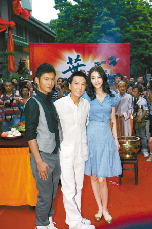 10日晚,導(dǎo)演葉偉信、監(jiān)制黃百鳴攜老班底甄子丹、熊黛林、樊少皇,加上新成員黃曉明、釋小龍,在廣州佛山舉行了《葉問(wèn)2》的開(kāi)機(jī)儀式。此前遭遇封殺傳聞的黃曉明透露,正苦練肌肉試與韓國(guó)天王RAIN一比高下。而熊黛林則走火入魔,狂練懷孕技巧。