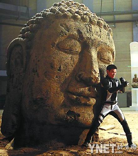 雖然已事先備下了保護(hù)措設(shè),但在推動佛像的過程中,千余斤的巨物突然失控,瞬間重重砸下,將劉德華劈頭蓋臉整個壓在下面,F(xiàn)場的工作人員嚇得忙一擁而上將劉德華攙扶起來,不料卻又導(dǎo)致畫面穿幫而無法使用。劉德華此時雖然一身疼痛,被重壓折磨得喘不過氣來,卻毫無怨言,恢復(fù)過來后毅然再次親自上陣。為了達(dá)到最震撼的視覺效果,每一次拍完后,劉德華還會不顧疼痛,跑到監(jiān)視器前面回看拍攝畫面,有不甚滿意之處就要求重拍。每一次都險象環(huán)生,劉德華卻鎮(zhèn)定地勸慰工作人員不要緊張,他的敬業(yè)精神令在場的工作人員敬佩感動不已。