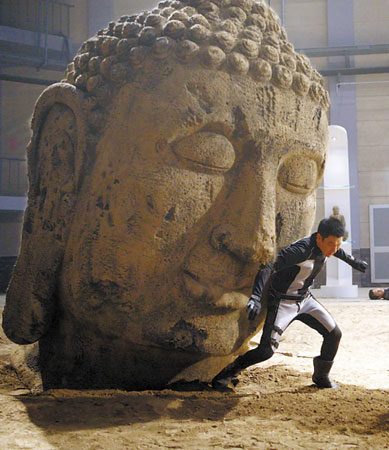 在《未來警察》中,劉德華化身為正義的未來警察,跟大S、范冰冰、徐嬌、樊少皇、賀軍翔共同上演了一出時空穿梭、正邪激戰(zhàn)的火爆好戲。片中有一幕,拍的是劉德華站在一尊兩米高的石佛之下,與樊少皇率領的改造人團伙激烈打斗。據了解,一貫追求完美的劉德華當時堅持不用替身,結果意外發(fā)生了。雖然已事先備下保護措施,但在推動佛像的過程中,這座千余斤的巨物卻突然失控,將劉德華壓在下面。現場工作人員大驚失色,一擁而上解救他,但畫面也因此穿幫。 (李麗)