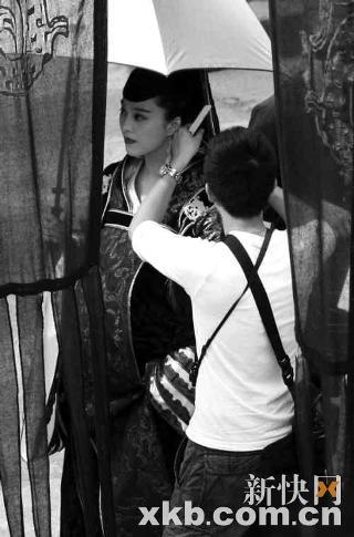 現(xiàn)場所見,范冰冰以華服綾羅的公主造型端坐在馬車內(nèi),黑紗遮面,被趙文卓緊緊牽著。她扮演的莊姬是趙孤的生母,因此也是片中分量最重的女性角色。導(dǎo)演一喊卡,立即有三四個(gè)助手沖上去攙扶范冰冰下車,這時(shí)候記者才發(fā)現(xiàn),范冰冰腹部高聳,肚大如籮。雖然范冰冰早前在《蘋果》中也扮演過孕婦角色,不過像這樣夸張的“十月臨盆”的大肚造型還是比較罕見的。范冰冰在戲內(nèi)萬人之上,戲外也是排場十足。專人打傘,專人提裙,專人遞水,專人開路。(新快報(bào))