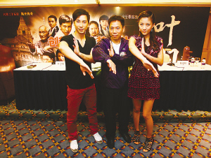 《葉問前傳》將于本月25日登陸重慶銀幕。昨日,該片制片人冼國林、主演杜宇航、陳嘉桓來渝為該片宣傳造勢,作為葉問嫡傳徒孫的冼國林不僅現(xiàn)場耍起了重5斤的大刀,還順手將雜志卷起當(dāng)武器,讓大家近距離見識(shí)了詠春拳的威力。