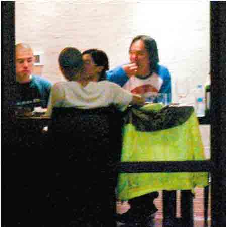 吃到一半,幾杯黃湯落肚,張柏芝立即發(fā)揮其豪放本色,整個(gè)人壓在謝霆鋒身上,又抱又吻的,完全無視于他人的存在。九點(diǎn)多眾人酒足飯飽離開,一路上談到刺青,張柏芝眉飛色舞,更斗膽扯去黑色低腰牛仔褲,將腰間的刺青展露于工作人員面前,一旁的謝霆鋒似乎見怪不怪,最后摟著張柏芝回酒店。