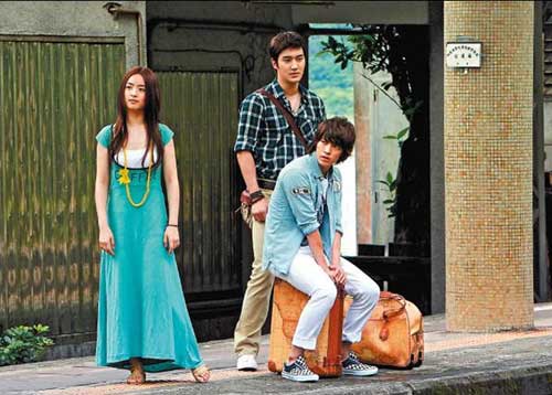 林依晨,崔始源和李東海三人昨天早晨在臺(tái)灣宜蘭大溪車(chē)站秘密會(huì)合,一碰面就拍離別戲碼,畫(huà)面離情依依默契滿(mǎn)分。