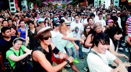“今日新聞”消息,自從流行樂天王邁克爾.杰克遜辭世后,世界各地不斷傳出為了紀念他而辦的快閃活動。臺灣地區(qū)也不落人后,知名舞者大目昨天發(fā)起快閃活動,透過網(wǎng)絡號召杰克遜粉絲,加上舞者,約有500人集體大秀杰克遜經(jīng)典舞蹈《Beat It》,一同跳出對他的無盡思念。