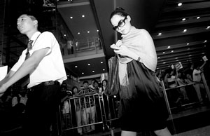 昨天下午2點(diǎn)多,記者在航站樓等待中國游泳隊(duì)回國時(shí),發(fā)現(xiàn)了一位星味十足的女子走出國際出口。