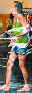 這時愛犬突然發(fā)瘋隔著玻璃對路人狂吠,還失控在店內狂奔,蕭薔才移動玉體小碎步把狗抓回來;不過她似乎發(fā)現(xiàn)記者拍照,隨即戴上漁夫帽和大墨鏡變裝。