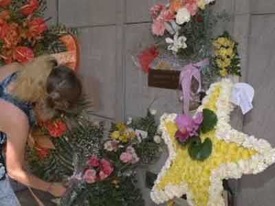 “今日新聞”消息,夢(mèng)露葬于“西木區(qū)紀(jì)念公園”(Westwood Village Memorial Park),正上方的墓穴原本葬的是1986年過(guò)世的李察朋契爾(Richard Poncher),他在生前從夢(mèng)露的前夫、美國(guó)棒球明星迪馬喬(Joe DiMaggio)手中買下這個(gè)穴位,但如今朋契爾的遺孀為了償還160萬(wàn)美元的比佛利山莊豪宅房貸,只好拍賣亡夫的墓穴。
