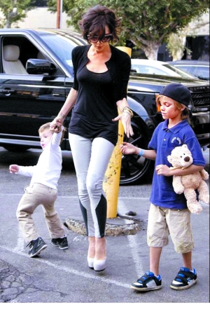 上周五,剛從倫敦返回洛杉磯的貝嫂就化身“慈母”,帶著4歲的克魯茲和7歲的羅密歐,前往好萊塢北部一家著名的酸奶屋買冰激凌。不過貝嫂這次一改往日的精致妝容和得體衣著,梳著有些凌亂的頭發(fā),穿著最低調(diào)的簡約款黑色上衣和灰色細(xì)腿褲,領(lǐng)著兩個孩子在街上走。如果脫掉腳下那雙具有貝嫂招牌裝扮的、大于10厘米的高跟鞋的話,維多利亞也不過是個清瘦一點(diǎn)的家庭婦女罷了。