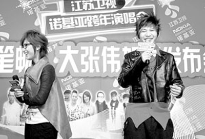 周筆暢、大張偉加盟江蘇衛(wèi)視跨年演唱會(huì)新聞發(fā)布會(huì)昨日在京舉行。雖說(shuō)大張偉年齡比周筆暢大,出道時(shí)間也比周筆暢長(zhǎng),但面對(duì)眼前這位“新人”,大張偉自稱“筆迷”,不僅極力討好,和周筆暢說(shuō)起話來(lái)還一口一個(gè)“您”。