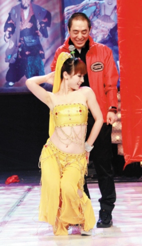 昨天,張藝謀率《三槍》主演孫紅雷、小沈陽、閆妮參加了東方衛(wèi)視《舞林大會》的錄制。在節(jié)目中,小沈陽耍起手絹,模仿《三槍》中“拋面餅”的一幕;孫紅雷則又一次展示了自己的霹靂舞。為了預祝影片票房大賣,張藝謀帶領(lǐng)孫紅雷、小沈陽和閆妮現(xiàn)場還吃起了《三槍》中的寬面條。此外,閆妮和倪大紅還在主持人的帶領(lǐng)下,現(xiàn)場玩起了演技大比拼。而現(xiàn)場最雷人的一幕,則依然發(fā)生在張藝謀身上,演員柳巖圍著張藝謀大跳肚皮舞,而不懂跳舞的張藝謀只能尷尬地大笑,極具娛樂效果。