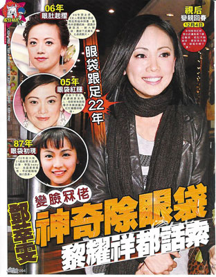 新晉“視后”鄧萃雯最近被香港媒體盯上,不僅和“視帝”黎耀祥傳出緋聞,日前又被某雜志爆出她做了切除眼袋手術(shù),極速“變臉”成功。對(duì)此,鄧萃雯解釋這是做面膜達(dá)到的美容效果。香港女星“變臉”現(xiàn)象頗為普遍,謝安琪、郭可盈、鄭裕玲等人都被媒體質(zhì)疑做過整形手術(shù),但幾乎無一人承認(rèn)。