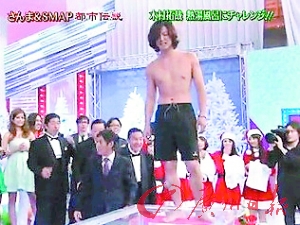 日本杰尼斯天團(tuán)SMAP最近一直被外界唱衰人氣下滑,因此在年底特別節(jié)目當(dāng)中,祭出“酷刑”搶救收視率,扒掉人氣最旺的木村拓哉,大秀鮪魚肚泡高溫?zé)崴,木村不僅當(dāng)場(chǎng)寬衣解帶,還被熱水燙得哇哇叫,下猛藥果然讓該集節(jié)目狂飆近6個(gè)百分點(diǎn)。