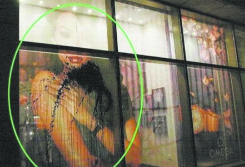 過了大概半個小時的樣子,這輛車又開到了酒店門前,車上下來了兩個用帽子遮著臉的男子,他們手里拿著墨汁,走到酒店東側(cè)一間鉑金店的門前,對著櫥窗里的章子怡代言海報(bào),將墨汁潑了上去,然后撒腿跑上了車。之后,這輛車?yán)瘓?bào)飛快離開了酒店,門前的記者和保安都被這一幕弄得有點(diǎn)莫名其妙。