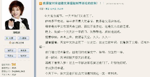 25日,謝晉遺孀狀告宋祖德等人誹謗案勝訴后,劉曉慶在博客上表示這場官司的輸贏在自己的預料之中,“他們應(yīng)該輸。不然就沒有天理了!眲詰c還感謝全世界各界人士及網(wǎng)民對謝晉導演的支持,感謝法律公正,還謝晉導演清白,也還了自己的清白。