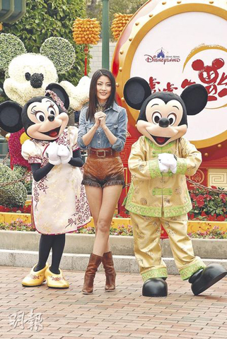 中新網(wǎng)2月5日電 陳慧琳 (Kelly)被香港迪斯尼樂園封為“幸福天后”,昨日Kelly現(xiàn)身迪斯尼樂園,與米奇一同介紹2月5日至28日特別推出的“虎虎生!毙麓汗(jié)目,迪斯尼更把Kelly的新歌《幸福的快車》和她為香港迪斯尼設(shè)計一系列鉆飾手袋名為“陳慧琳KxM系列”,在迪斯尼擺賣。