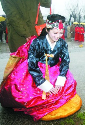 近日,張娜拉與父親朱虎聲一起,身著韓服出現(xiàn)在湖北省蘄春縣內(nèi)重點(diǎn)文物保護(hù)單位——李時(shí)珍墓區(qū)。雖然大雨滂沱,張娜拉仍舊隆重其事地向“藥圣”李時(shí)珍墓磕頭行禮,被任命為“李時(shí)珍形象大使”。