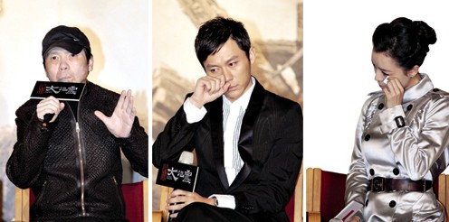 馮小剛的新片《唐山大地震》昨天在北京召開發(fā)布會(huì)公布了首款預(yù)告片。而對(duì)于剛剛發(fā)生的玉樹地震,也許劇組想要避免借玉樹炒作的嫌疑,在表示將向玉樹捐款20萬之后,就不愿談?wù)摳。在章子怡的“詐捐門”之后,馮小剛也吸取了教訓(xùn),表示捐款“一定要開發(fā)票”!