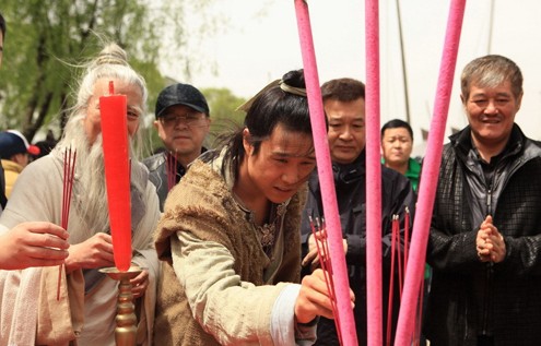 昨天上午,由博納影業(yè)、本山傳媒和延平工作室共同出品的賀歲新片《大笑江湖》在無錫影視基地正式開拍。博納影業(yè)總裁于冬和導演朱延平、武術指導程小東攜主演趙本山、小沈陽、程野出席了開機拜神儀式。隨著幾位主演正式投入拍攝,趙本山和小沈陽在片中的全新形象也正式曝光。扮演小鞋匠的小沈陽的扮相一改《三槍拍案驚奇》中的艷麗形象,變身古代帥氣熟男。據(jù)悉,小沈陽這次不只耍嘴皮子功夫,還要亮出自己二人轉底子的“真活兒”,拍攝大量的動作戲。