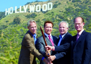 美國時(shí)間4月26日,加州州長施瓦辛格專門在招牌所在的山腳下演講,他說:“好萊塢招牌是夢想、機(jī)遇和希望的符號,它矗立在那里歡迎著一代又一代的夢想者、藝術(shù)家,還有奧地利的健美運(yùn)動員來到這里!彼在講話中感謝了捐助者們,他們包括美國電影藝術(shù)與科學(xué)學(xué)院、CBS電視臺、NBC環(huán)球公司、索尼影業(yè)、20世紀(jì)?怂构、華納兄弟公司、時(shí)代華納公司、斯皮爾伯格、湯姆·漢克斯夫婦等等。
