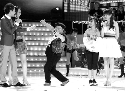 身材矮胖、表情豐富、舞姿夸張,60歲的馬秀林在日前東方衛(wèi)視直播的《歡聚世博·全家都來賽》節(jié)目中甫一亮相,即引發(fā)驚呼——“芙蓉奶奶來了!”但最終奪冠呼聲頗高的“芙蓉奶奶”仍慘遭淘汰,對(duì)此,“芙蓉奶奶”當(dāng)場(chǎng)發(fā)飆:“評(píng)委何占豪完全不懂我的表演,評(píng)委標(biāo)準(zhǔn)有問題! ”