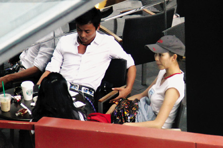 當天蔡少芬頭戴一頂棒球帽,白T恤配長裙的裝扮令其看上去非常有活力;蛟S是由于愛情的滋潤,雖然當天蔡少芬并沒有化妝,不過依然顯得非常漂亮。他們走進一家咖啡廳,落座后張晉侃侃而談,蔡少芬則一臉愛意地注視他。說到高興時,張晉抬起左手指指點點,蔡少芬馬上用手握住老公的胳膊,臉上滿是關心的表情,兩人看上去就像熱戀的情侶般默契十足,恩愛非常。