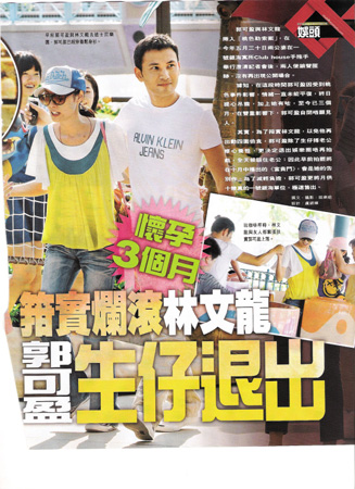 據(jù)報道,郭可盈已經(jīng)有三個月身孕,她的朋友透露:“文龍一直都希望有小朋友,但可盈事業(yè)心太重,整天想著工作,不想生孩子。不過發(fā)生桃色勒索案之后,他們經(jīng)常溝通,患難見真情,可盈終于答應生孩子,她希望有了孩子之后,文龍會有責任感,不要再像以前那樣出去玩!