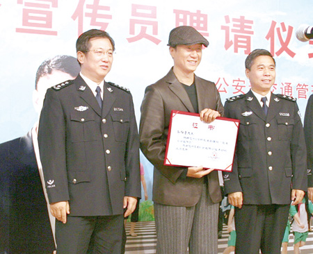 在熱播電視劇《潛伏》中成功扮演地下黨員余則成的影視明星孫紅雷,今日又多了一個(gè)身份———交通安全宣傳員。今天上午11點(diǎn)半,孫紅雷在眾多媒體“咔咔”作響的鎂光燈下,從公安部交通管理局局長楊鈞手里接過大紅的“交通安全宣傳員”證書,正式成為公安部交通管理局聘請的首位交通安全公益宣傳明星。