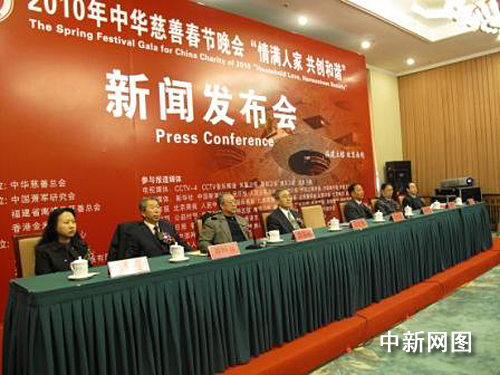 中新網(wǎng)12月3日電 今天,由中華慈善總會主辦的“情滿人家 共創(chuàng)和諧”2010年中華慈善春節(jié)晚會新聞發(fā)布會在北京舉行。中華慈善總會會長范寶俊,副秘書長麻貴林等出席了發(fā)布會,對虎年的慈善春晚做了介紹。各種形式的春晚每年都是老百姓過年的重頭戲,和其他以娛樂百姓為主的春節(jié)晚會相比,慈善春晚的主題性更為明顯。整臺晚會主打情感牌,以情動人。在為觀眾獻(xiàn)上精彩演出的同時(shí),還將表彰在過去一年里對慈善做出貢獻(xiàn)的個(gè)人和單位。