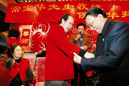 最近備受“遺產(chǎn)案”和“廣告代言門”事件困擾的侯耀華,15日正式拜師常寶華。當(dāng)日,在唐杰忠、石富寬等全國200多位曲藝同行面前,侯耀華不忘為自己“喊冤”:“我做的事情,天地可鑒!”