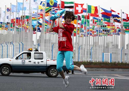 中新網(wǎng)5月7日電 5月6日,演員、歌手金巧巧輕裝來到上海,搭上2010上海世博會(huì)首周游覽的末班車。此行,金巧巧很是悠閑自得,隨行僅一名助理,在接受媒體采訪時(shí)她說,“北京在一場(chǎng)大雨之后天氣熱了好多,沒想到上海更是熱得不行!