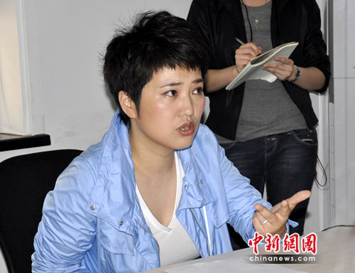 5月16日,一身便裝、神色輕松的張丹丹在長沙接受媒體采訪,為新節(jié)目宣傳造勢。