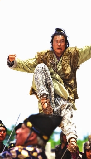 小沈陽在《大笑江湖》中飾演一名平凡小鞋匠,機(jī)緣巧合之下練就絕世武功,變成了一個(gè)勇于承擔(dān)的男子漢。既然是大俠當(dāng)然要會(huì)“飛”,而動(dòng)作指導(dǎo)程小東也是個(gè)“大好人”,因此讓小沈陽開心地在天上飛來飛去一整天,圓了他飛天小俠的夢。程小東表示:“小沈陽作為二人轉(zhuǎn)演員還是有些功夫底子的,否則不可能吊在半空中一天還這么瀟灑,換作別人早送醫(yī)院了!辈贿^由于橫店天氣過于炎熱,小沈陽一遍遍拳打腳踢、跳躍騰挪,最終虛脫不起,也差點(diǎn)送醫(yī)院。記者邱晨通訊員趙佳