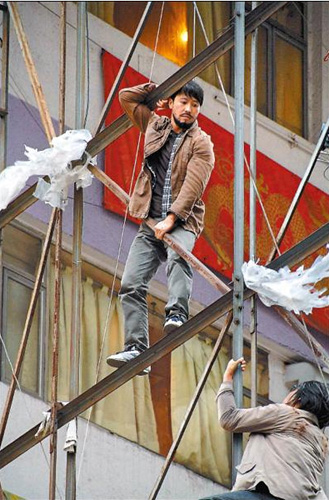 臺(tái)灣媒體消息,黎明前天在銅鑼灣鬧市區(qū)拍攝一場(chǎng)驚險(xiǎn)追逐的戲,現(xiàn)場(chǎng)只見(jiàn)黎明在5層樓高的鷹架上爬來(lái)爬去,看得叫人為他捏把冷汗。