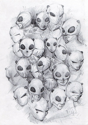 中新網(wǎng)9月9日電 日前,由周杰倫構思設計、與美術工作人員共同繪制的偶像劇《熊貓人》人物造型定裝草圖曝光。據(jù)報道,他的繪畫天份來自媽媽葉惠美,周媽是退休的初中美術老師,周杰倫從小沉浸繪畫天地,耳濡目染。