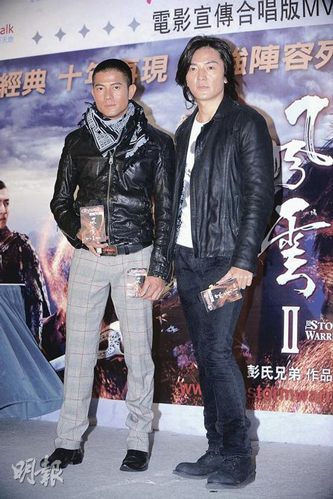 中新網(wǎng)11月23日電 郭富城及鄭伊健 昨日出席電影《風(fēng)云II》合唱版MV啟播禮,早前有指兩人因爭唱主題曲而鬧不和,城城說:“主題曲原本由我獨(dú)唱,歌名《風(fēng)云義》亦由我想出來,不過電影公司提議合唱以配合宣傳!背浅潜硎疽两∠蠕浺簦犨^后覺得伊健表現(xiàn)非常好,而他入行以來未試過與男生合唱,所以感覺很新鮮。